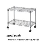 スチールラック メタルラック 幅60 2段 スチールラック 棚 オープンラック MTV-2C テレビ台 プリンター台 什器 ラック 棚 本棚 キャスター付き