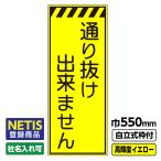 Netis登録商品 工事看板「通り抜け出来ません」 550X1400 プリズム高輝度反射 イエロー 黄色 蛍光 自立式19角枠付