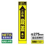 Netis登録商品 工事看板 スリム「この先段差あり」 プリズム高輝度反射 イエロー 黄色 蛍光緑 自立式枠付 19角付