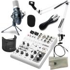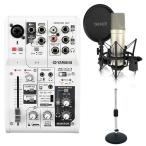 《使い方動画付属》YAMAHA ヤマハ AG06 ミキサー + コンデンサーマイク + アーム型スタンド(白) + ポップガードPO-7 + クロス + ミニケーブル 配信セット
