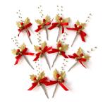 クリスマスケーキ 飾り オーナメント FX-7 ビーズがお洒落なメリークリスマスと赤いリボン (10本入)