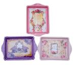 レクトトレー フレンチリボン ピンク ホワイト ブルー アクセサリー置き 小物置き 薔薇雑貨 トレイ 小物トレー おしゃれ アンティーク調