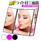 卓上ミラー 三面鏡 LEDライト付 女優ミラー スタンドミラー 卓上鏡 化粧 メイク 送料無料